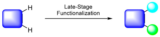 - Moir, M.; Danon, J.J.; Reekie, T.A.; Kassiou, M. An overview of late-stage functionalization in today’s drug discovery. Expert Opin. Drug Discov. 2019, 14, 1137–1149. [Google Scholar] [CrossRef] [PubMed]