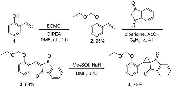 3.2. 2-[2-(Ethoxymethoxy)phenyl]spiro[cyclopropane-1,2′-indene]-1′,3′-dione (4)