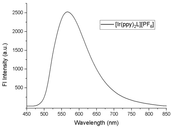 The photoluminescence spectrum of [Ir(ppy)2L]PF6 in acetonitrile (λexc = 350 nm).