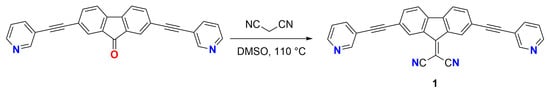 3.2. Synthesis of 2-(2,7-Bis(pyridin-3-ylethynyl)fluoren-9-ylidene)malononitrile (1)
