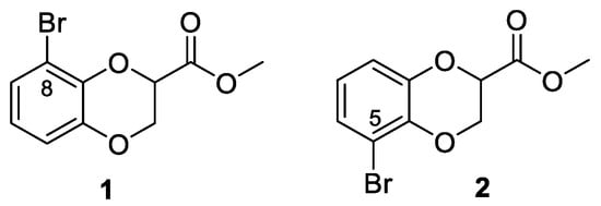 Methyl 8-bromo-1,4-benzodioxane-2-carboxylate (1) and methyl 5-bromo-1,4-benzodioxane-2-carboxylate (2).