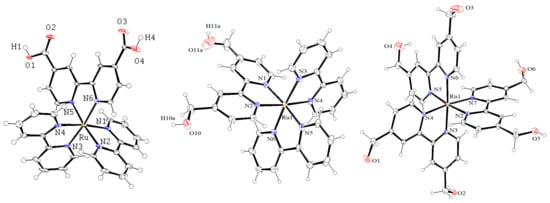 9. Rillema, D.P.; Jones, D.S. Structure of tris (2, 2′-bipyridyl) ruthenium (II) hexafluorophosphate, [Ru(bipy)3][PF6]2; X-ray crystallographic determination. J. Chem. Soc. Chem. Commun. 1979, 19, 849–851. [Google Scholar] [CrossRef]