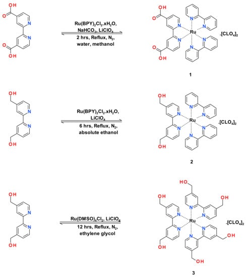 2. Qin, Y.; Peng, Q. Ruthenium sensitizers and their applications in dye-sensitized solar cells. Int. J. Photoenergy 2012, 2012, 842–857. [Google Scholar] [CrossRef]