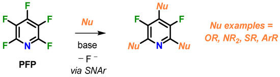 - Gautam, R.; Geniza, I.; Iacono, S.T.; Friesen, C.M.; Jennings, A.R. Perfluoropyridine: Discovery, Chemistry, and Applications in Polymers and Material Science. Molecules 2022, 27, 1616. [Google Scholar] [CrossRef] [PubMed]