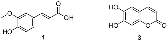 Two biologically active compounds, ferulic acid 1 and esculetin 3.