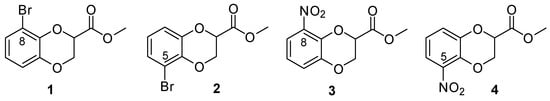 Methyl 8- and 5-bromo-1,4-benzodioxane-2-carboxylates (1 and 2) and methyl 8- and 5-nitro-1,4-benzodioxane-2-carboxylates (3 and 4).