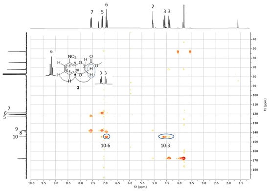 HMBC spectrum of 3 in CDCl3 displaying important correlations between C(10) and H(6) and between C(10) and H(3).
