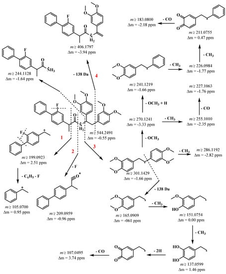 APA StyleManolov, S., Bojilov, D., Ivanov, I., & Nedialkov, P. (2023). (±)-N-(1,2-Bis(3,4-dimethoxyphenyl)ethyl)-2-(2-fluoro-[1,1′-biphenyl]-4-yl)propanamide. Molbank, 2023(3), M1679. https://doi.org/10.3390/M1679