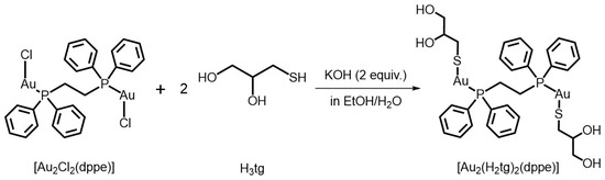 3.4. Synthesis of [Au2(H2tg)2(dppe)] (1)