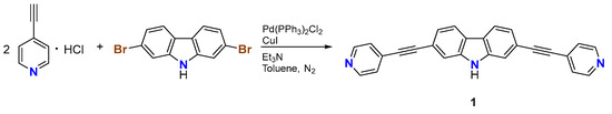 3.2. Synthesis of 2,7-Bis(pyridin-4-ylethynyl)-9H-carbazole (1)