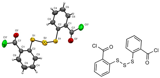 3.2. Formation and X-ray Structure Determination of 2,2′-Trisulfanediyldibenzoyl Chloride 5