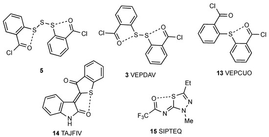 Non-bonding S…O interactions in 5, 3 and 13–15.