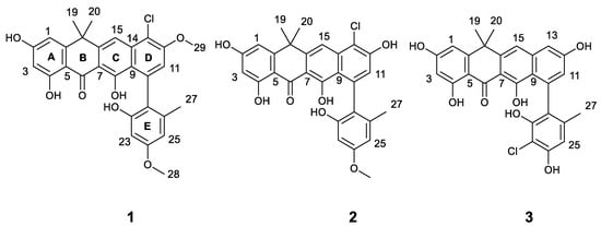 1–3) from the acetone fractions of the strain. The structures of compounds
