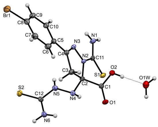 3.2. 3-(4-Bromophenyl)-1-carbamothioyl-5-(2-carbamothioylhydrazinyl)-4,5-dihydro-1H-pyrazole-5-carboxylic Acid 1