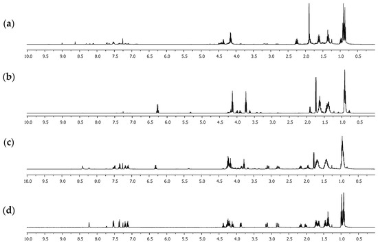 1H NMR spectra of the extracted reaction crudes at different temperatures in CDCl3: (a) 80 °C, 40 min; (b) 120 °C, 40 min; (c) 140 °C, 20 min; (d) 140 °C, 40 min.