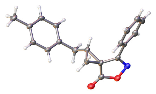 The melting point was determined on a Stuart SMP30 melting-point apparatus. NMR spectra were recorded on a Bruker Avance 400 spectrometer in CDCl3. 1H and 13C{1H} NMR spectra were calibrated according to the residual signal of CDCl3 (δ = 7.26 ppm) and the carbon atom signal of CDCl3 (δ = 77.0 ppm), respectively. High-resolution mass spectra were recorded with a Bruker maXis HRMS-QTOF, via electrospray ionization. Thin-layer chromatography (TLC) was conducted on aluminum sheets precoated with SiO2 ALUGRAM SIL G/UV254. Column chromatography was performed on silica gel 60 M (0.04–0.063 mm). Diethyl ether was distilled over sodium metal and stored over it. 4-(4-Methylbenzyl)-3-phenylisoxazol-5(4H)-one 1 was prepared using the reported procedure [23].