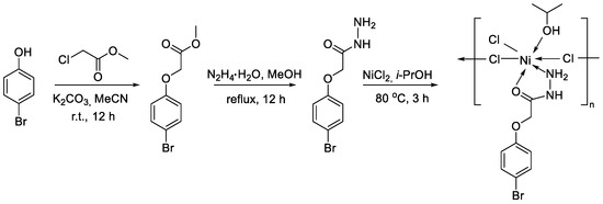 2-(4-Bromophenoxy)acetohydrazide (L) was obtained from the corresponding ester by reaction with hydrazine hydrate in refluxed methanol (Scheme 1). An ester precursor was synthesized from p-bromophenol by a reaction with methyl chloroacetate.