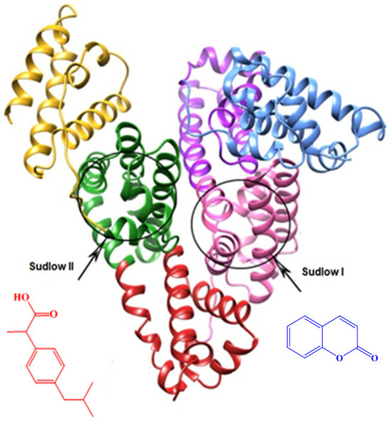 Figure 3). According to the Sudlow nomenclature, Fasano et al. found that bulky heterocyclic molecules bind to Sudlow I (located in subdomain IIA), while aromatic carboxylic acids and phenes bind to Sudlow II (located in subdomain IIIA) (