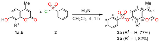 4.5. Synthesis of 8-Iodo-4-methyl-2-oxo-2H-chromen-7-yl Benzenesulfonate (3b)