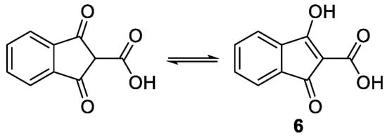- Enchev, V.; Angelova, S.; Rogojerov, M.; Monev, V.; Wawer, I.; Tkaczyk, M.; Kostova, K. Solid-State Tautomerism in 2-Carboxyindan-1,3-Dione. J. Phys. Chem. A 2011, 115, 2026–2034. [Google Scholar] [CrossRef] [PubMed]
