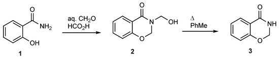 3.2. Synthesis of 2-Hydroxymethyl-2,3-dihydrobenzo[e][1,3]oxazin-4-one 2