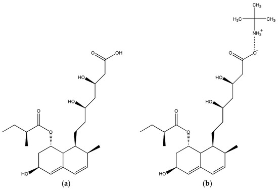 The aim of this study was to achieve the preparation of pravastatin in a crystalline form, which was successfully prepared as a tert-butylamine salt (denoted Prav-tbua, Figure 1b), the elucidation of its crystal structure via X-ray crystallography and its characterization from a structural point of view.
