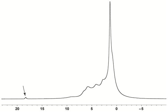 The 1H MAS NMR spectrum (Figure 3) showed strongly overlapped lines in the downfield region (0–9 ppm) and one deshielded signal for the protons involved in strong hydrogen bonds. This hydrogen is gained by the amino group of the tert-butylamine molecule as indicated by the single-crystal X-ray structural model and confirmed by the fact that C1–O1 and C1–O2 bond lengths have similar values, i.e., 1.246 and 1.260 Å. Geometrical features of neutral carboxylic groups (C–O bonds are longer than C=O) are different from those of a carboxylate anion, where depending on the extent of delocalization of negative charge between the oxygen atoms, there can be practically no difference between the C–O and C=O distances [16].