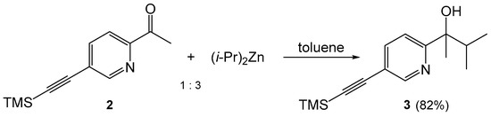 Mikhailov, O.A.; Kurbangalieva, A.R.; Gridnev, I.D. 3-Methyl-2-(5-((trimethylsilyl)ethynyl)pyridin-2-yl)butan-2-ol. Molbank 2024, 2024, M1925. https://doi.org/10.3390/M1925