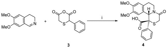 - Pashev, A.; Burdzhiev, N.; Stanoeva, E. One-step route to tricyclic fused 1,2,3,4-tetrahydroisoquinoline systems via the Castagnoli–Cushman protocol. Beilstein J. Org. Chem. 2020, 16, 1456–1464. [Google Scholar] [CrossRef] [PubMed]