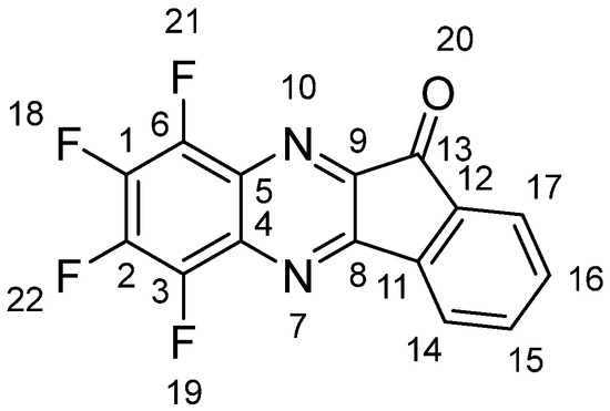 Alongside this, there is an emerging interest in highly fluorinated chemotypes [20,21,22], which include still-unknown highly fluorinated indenoquinoxalinones. Here, we report on synthesis of 6,7,8,9-tetrafluoro-11H-indeno[1,2-b]quinoxalin-11-one and elucidate its structure by means of single-crystal XRD.