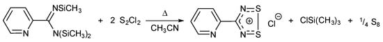 A typical example of the synthetic utility of persilylamidines such as 1 in reactions with element chlorides, yielding 4-(2′-pyridyl)-1,2-dithia-3,5-diazolium chloride (pure, 94%) [3].