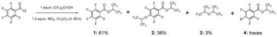 3.3. Reaction of Pentafluorobenzoyl Chloride with 1,1,1,3,3,3-Hexafluoro-2-propanol