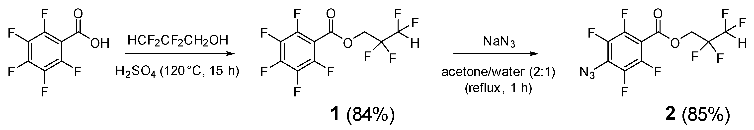 - Siegmann, K.; Inauen, J.; Villamaina, D.; Winkler, M. Photografting of perfluoroalkanes onto polyethylene surfaces via azide/nitrene chemistry. Appl. Surf. Sci. 2017, 396, 672–680. [Google Scholar] [CrossRef]