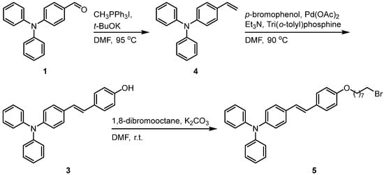Synthetic Route of (E)-4-(4-((8-bromooctyl)oxy)styryl)-N,N-diphenylaniline (5).