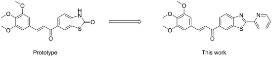 - Ivanova, Y.B.; Gerova, M.S.; Momekov, G.T.; Petrov, O.I. Synthetic chalcones of 2 (3H)-benzothiazolone with potential cytotoxic activity. Comp. Rend. Acad. Bulg. Sci. 2007, 60, 641–644. [Google Scholar]