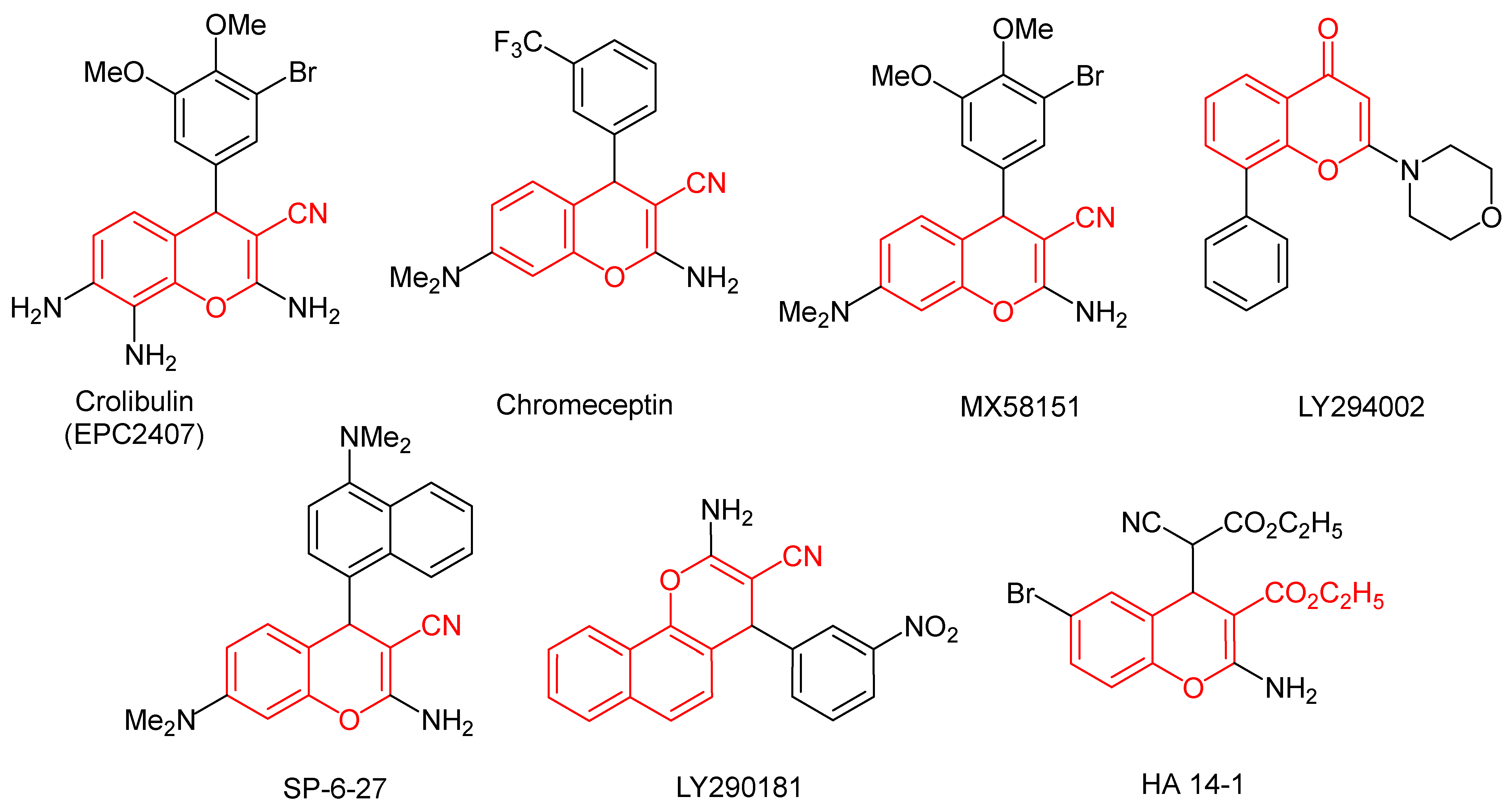 - Patil, S.A.; Patil, R.; Pfeffer, L.M.; Miller, D.D. Chromenes: Potential new chemotherapeutic agents for cancer. Future Med. Chem. 2013, 5, 1647–1660. [Google Scholar] [CrossRef]