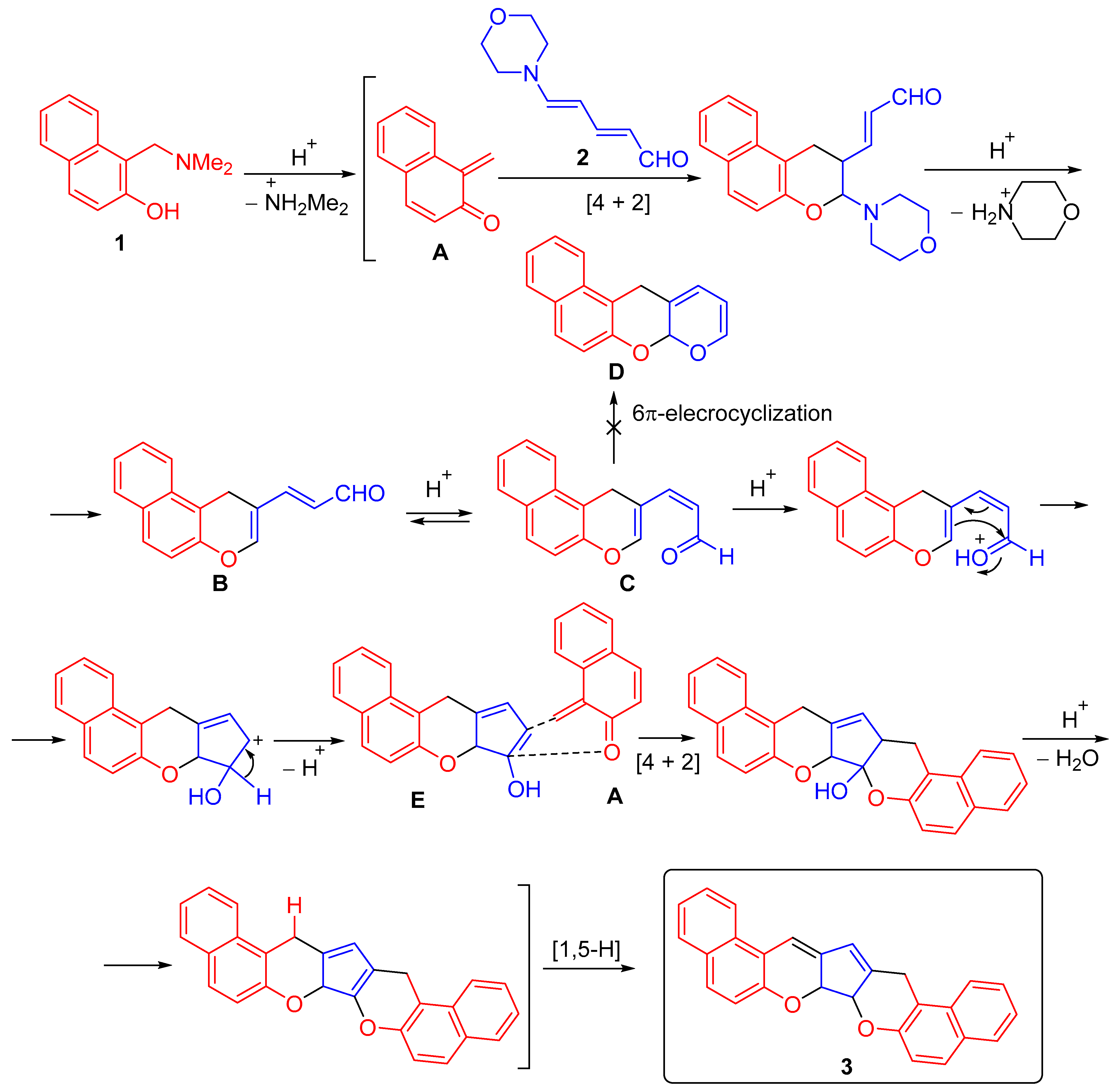 - Osyanin, V.A.; Lukashenko, A.V.; Osipov, D.V. Cycloaddition reactions of o-quinone methides with polarized olefins. Russ. Chem. Rev. 2021, 90, 324–373. [Google Scholar] [CrossRef]
