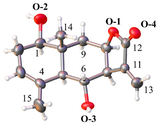 3.3. X-Ray Structure of 1β, 6α-Dihydroxy-5αH-eudesma-3(4), 11(13)-dien-12, 8β-olide (1)
