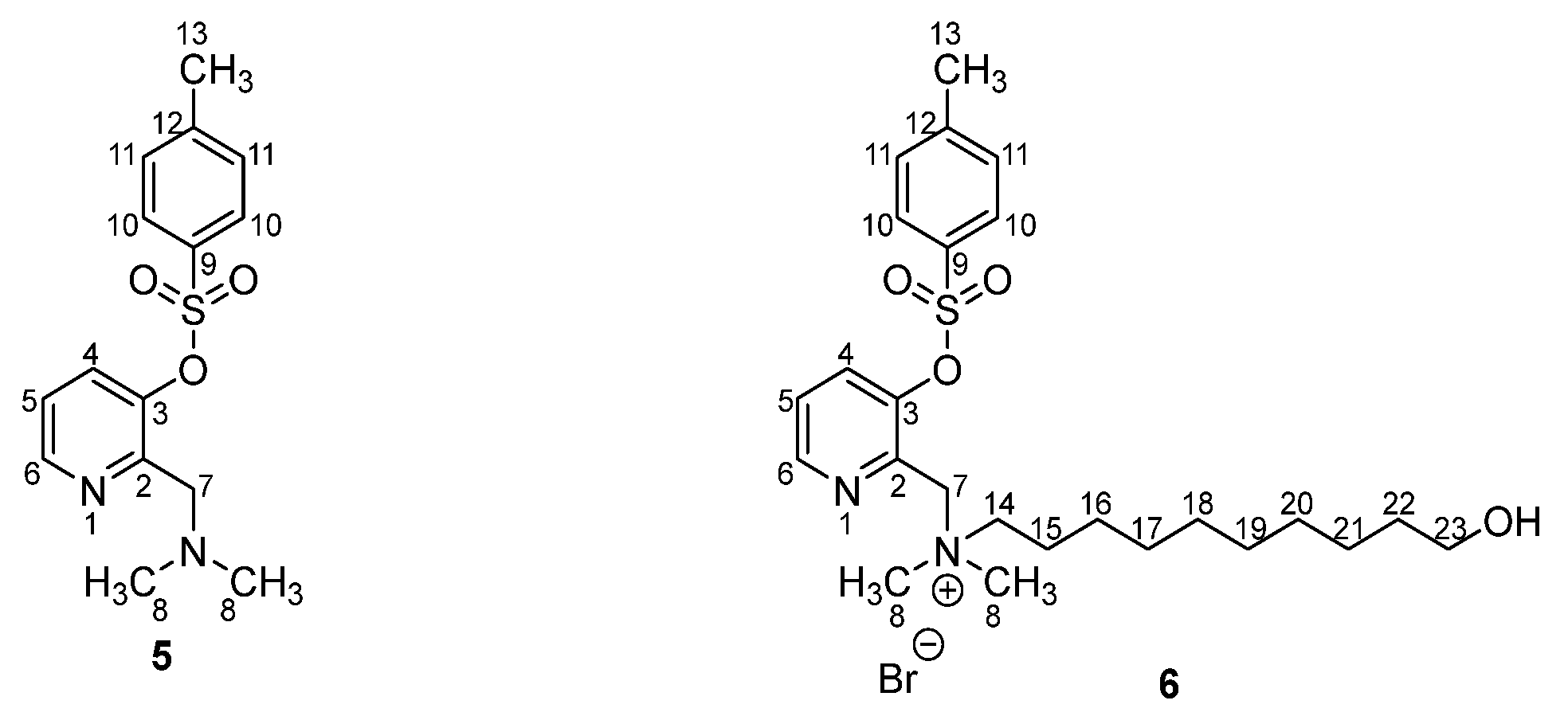 Chicago/Turabian StyleHron, Václav, Martin Urban, and Tomáš Tobrman. 2025. "Linear Synthesis of 10-Hydroxy-N,N-dimethyl-N-((3-(tosyloxy)pyridin-2-yl)methyl)decan-1-aminium Bromide" Molbank 2025, no. 4: M2112. https://doi.org/10.3390/M2112