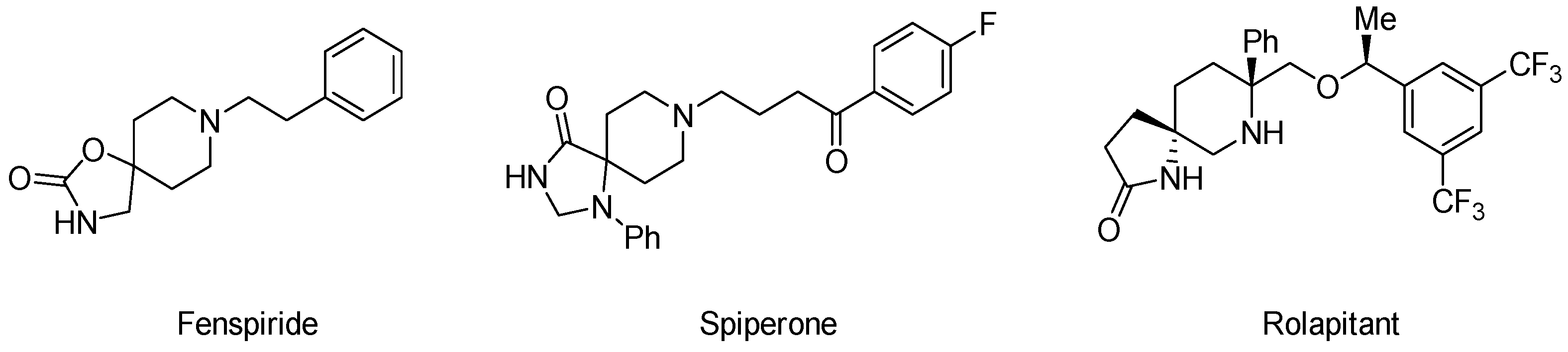 - Basavaraja, D.; Siby, A.; Sreelakshmi, V.; Ancy, A.; Somappa, S.B. Spiro-heterocycles: Recent advances in biological applications and synthetic strategies. Tetrahedron 2025, 173, 134468. [Google Scholar] [CrossRef]
