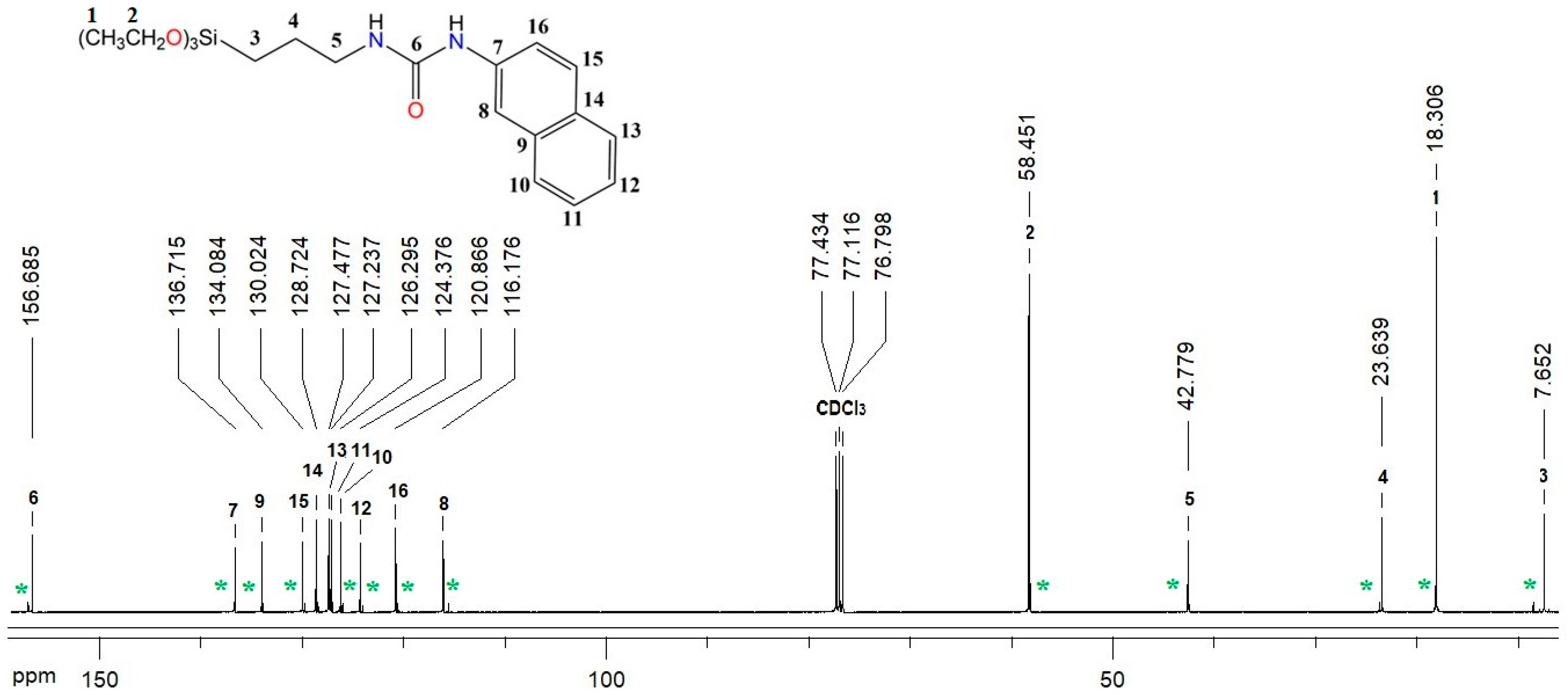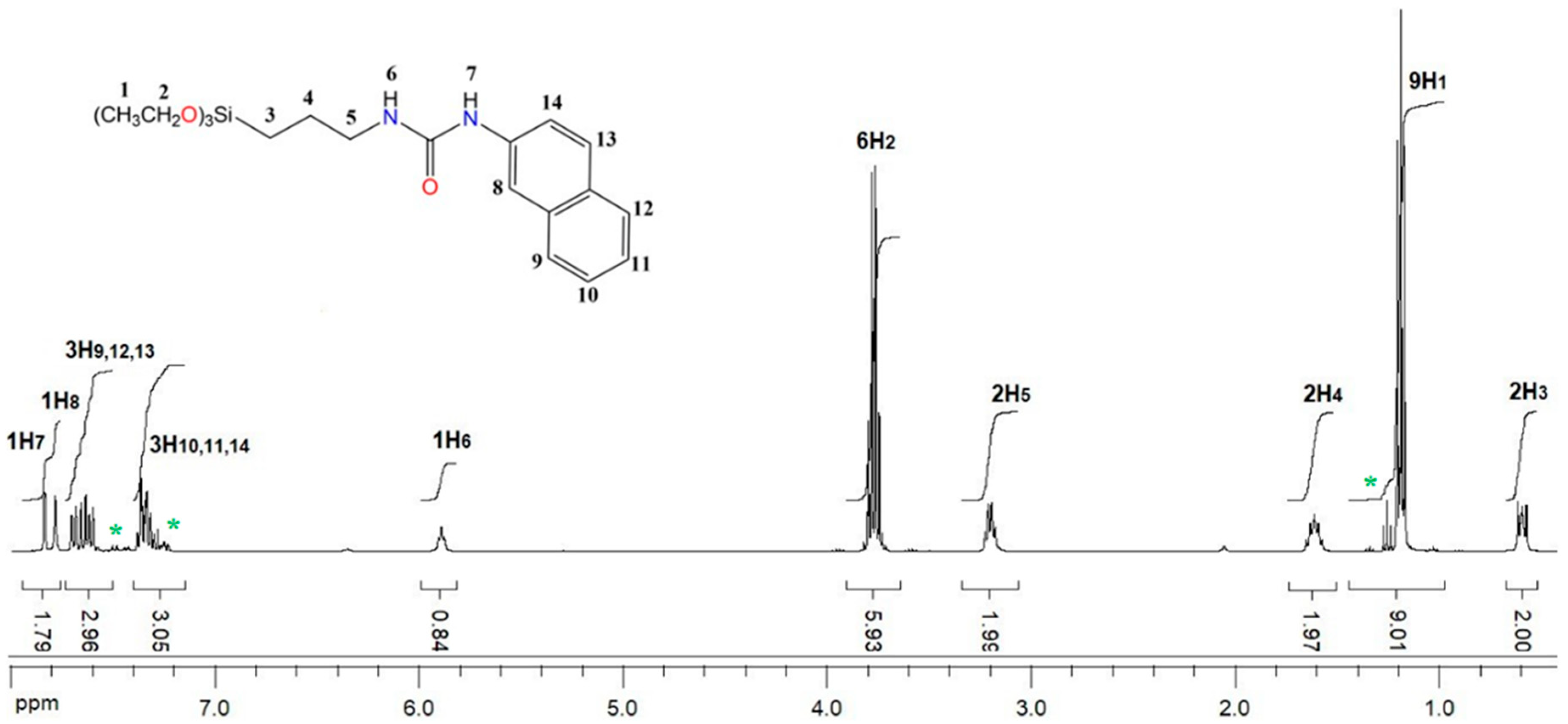 2.1. Synthesis and Characterization of N-(2-Naphthyl)-N′-(triethoxysilanepropyl) Urea