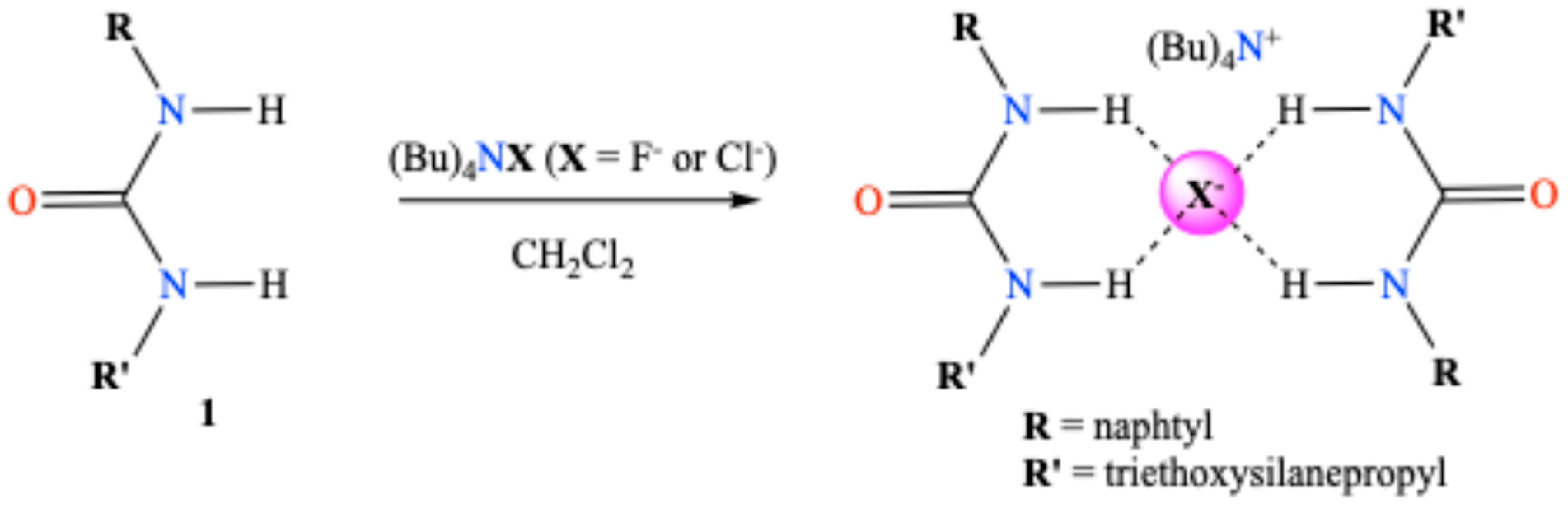 - Smith, P.J.; Reddington, M.V.; Wilcox, C.S. Ion pair binding by a urea in chloroform solution. Tetrahedron Lett. 1992, 33, 6085–6088. [Google Scholar] [CrossRef]