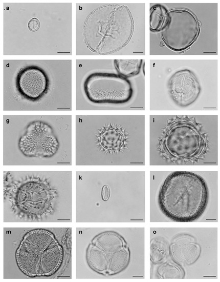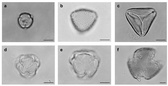 - Erdtman, G. The acetolizes method: A revised description. Svensk Bot. Tidskr. 1960, 54, 561–564. [Google Scholar]