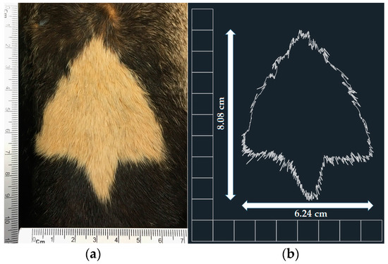 Of the 275 specimens examined, 222 specimens of Eira barbara had a throat patch yet only 81 patches were complete. Eight of these 81 samples were excluded because the throat patch extended through the neck, shoulder and back; in these cases the throat patches did not have a limit (Figure 3b) and were impossible to measure. Therefore, only 73 throat patches were used to characterize morphological measurements and the shape index (Table 3 and Table A1).