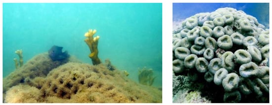 - Loiola, M.; Oliveira, M.D.; Kikuchi, R.K. Tolerance of Brazilian brain coral Mussismilia braziliensis to sediment and organic matter inputs. Mar. Pollut. Bull. 2013, 77, 55–62. [Google Scholar] [CrossRef] [PubMed]