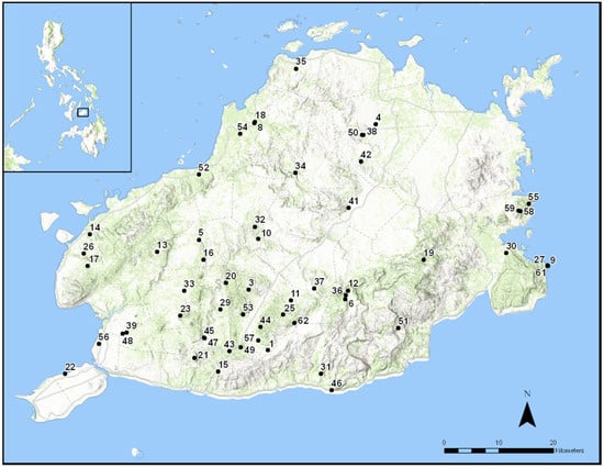 - Heaney, L.R.; Dolar, M.L.; Balete, D.S.; Esselstyn, J.A.; Rickart, E.A.; Sedlock, J.L. Synopsis of Philippine mammals. Available online: http://archive.fieldmuseum.org/philippine_mammals/index.html (accessed on 10 March 2016).