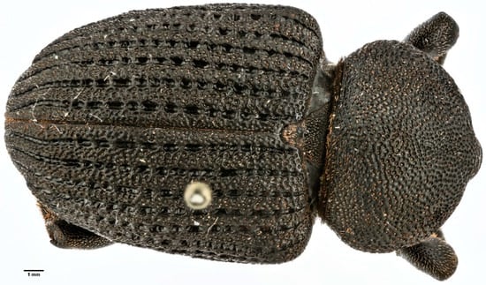 - Alonso-Zarazaga, M.A.; Lyal, C.H.C. A World Catalogue of Families and Genera of Curculionoidea (Insecta: Coleoptera) Excluding (Scolytidae and Platypodidae); Entomopraxis: Barcelona, Spain, 1999. [Google Scholar]