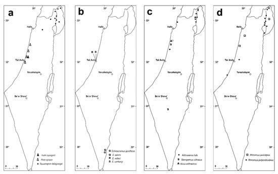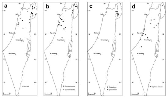 Transliterated names of localities in Israel follow the Israel Touring Map and List of Settlements published by the Survey of Israel []. Where names of localities have changed, the most recent transliterated Hebrew names are given followed by the old names in brackets: for example—Yeriho [Jericho]. Erroneous spellings are also included in brackets following the correct spelling. Plant names and distribution follow Danin and Fragman-Sapir []. Regional subdivision of Israel follows Theodor [], with changes made by Ionescu and Eyer [].