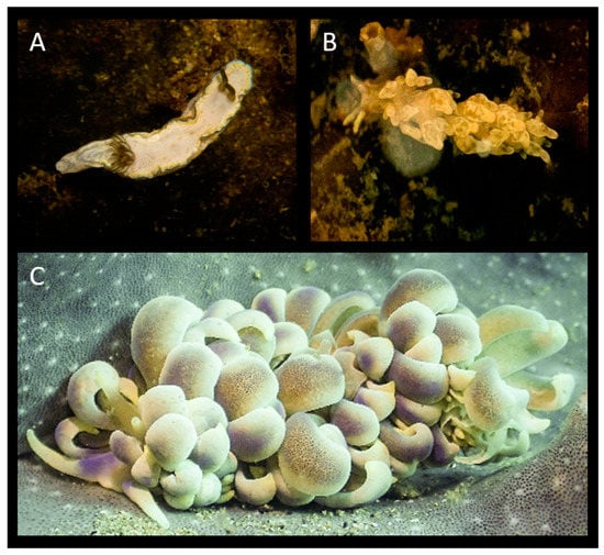 - Coleman, N. Nudibranchs Encyclopedia; Neville Coleman’s Underwater Geographic Pty, National Library of Australia: Springwood, Australia, 2008; ISBN 9780947325411. [Google Scholar]