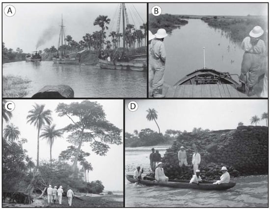 Scientific research expeditions to Guinea-Bissau undertaken by the Tropical Research Institute (IICT): (A) Geba River, near the village of Cuor. Photo: Fernando Frade, 1946; (B) Imperial river. Photo: Bernardo Coelho Gonçalves, 1945. Bijagós Islands: (C) Bubaque Island; (D) Canhabaque Island. Photos of Elmano Cunha e Costa 1935–1939. Copyright, Instituto de Investigação Científica Tropical (IICT/Universidade de Lisboa), Portugal.